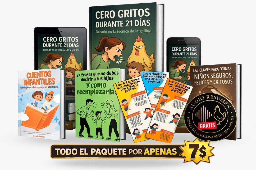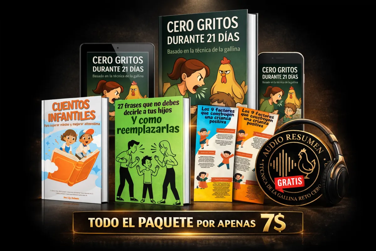 Es un programa guiado de 21 días que te enseña a eliminar el hábito de gritar y lograr obediencia sin castigos, paso a paso.